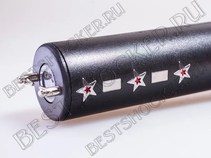 Благодаря функции «антивыхватыватель» Ваш электрошок останется в Ваших руках, даже в случае, если напавший на вас, попытается вырвать шокер из рук. Металлические вставки уна конце электрошокера под напряжением – это и есть антивыхватыватель.